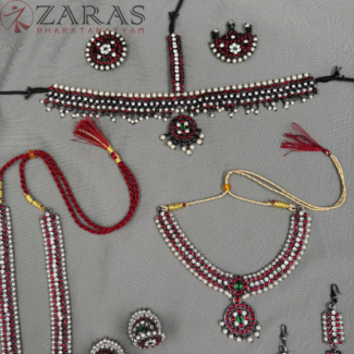 The jewelry set I purchased is absolutely stunning! The intricate design and vibrant colors truly capture the essence of Bharatanatyam. It arrived promptly and was beautifully packaged. I received numerous compliments during my performance. Highly recommend!