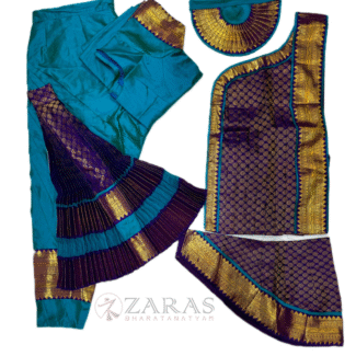 Bharatanatyam Dance Costume Readymade – Turquoise Blue with Violet Brocade