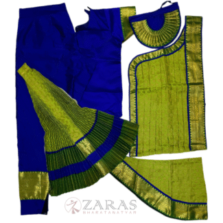 Bharatanatyam Dance Costume Readymade – Blue with Light Green Brocade