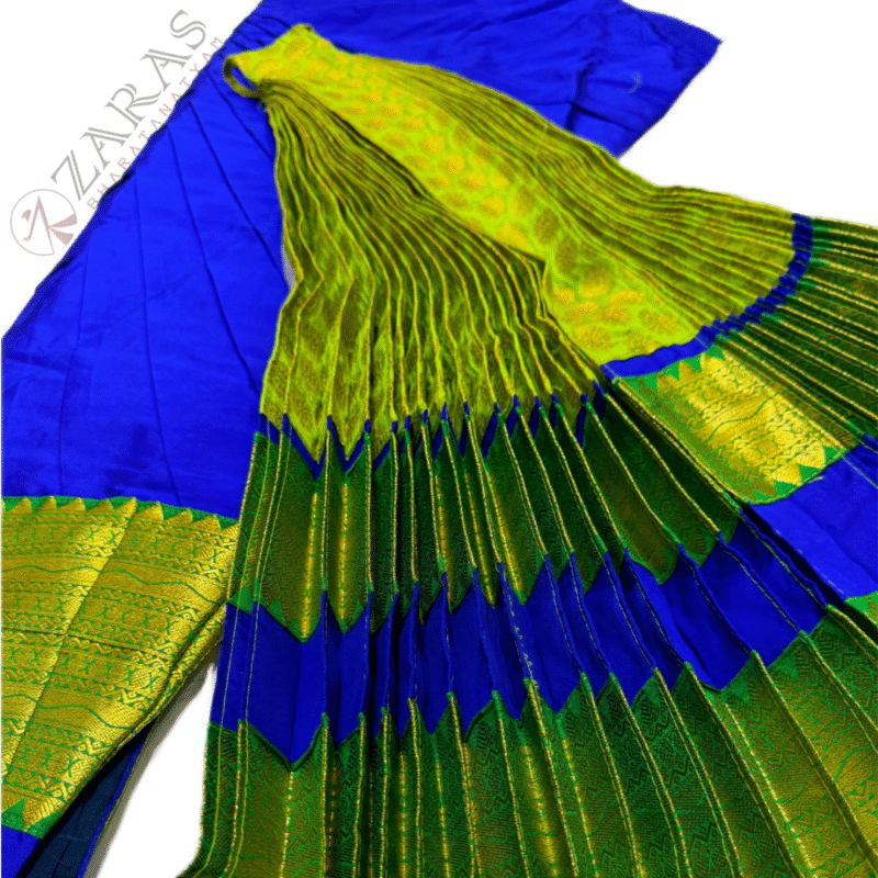 Bharatanatyam Dance Costume Readymade – Blue with Light Green Brocade