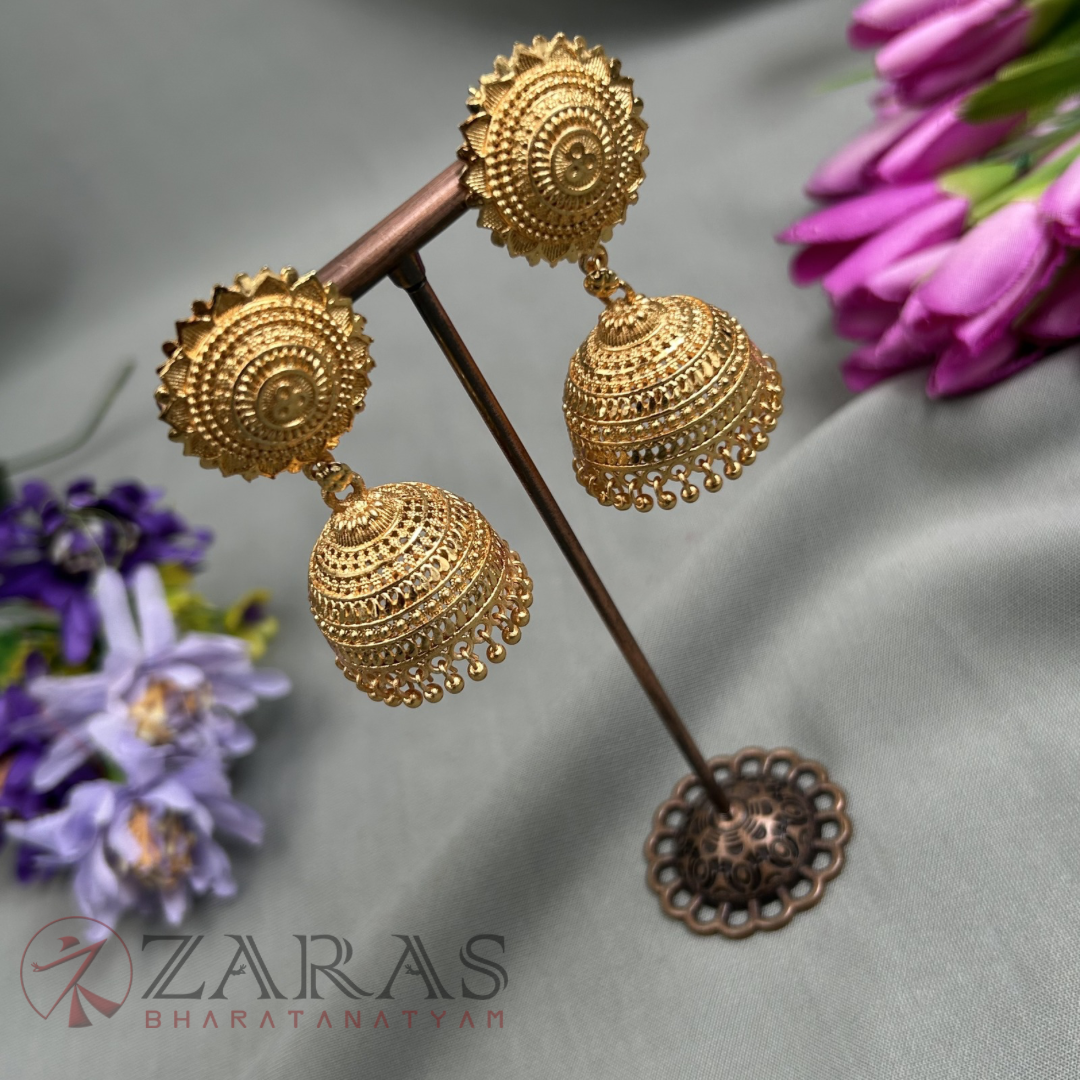 Earrings (thodu or kammal) are an integral part of a dance performance. From dance classes to the stage, a thodu accompanies the dancer. Despite the art form be it Bharatanatyam, Kuchipudi or Mohiniyattam, the style or design may change, but the Jhumka remains constant.