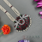 Zaras has a wide range of Haram collections starting from pearls to coloured stones, white stones and gold-plated harams. The pearl harams mostly come with a combination of white pearls, and maroon and green kemp stones. The pendant adorned with pearl hangings and unique designs filled with kemp stones is another rare touch. The harams designed with white and coloured stones, give a more royal look with its intricate designs and can be opted for stage performances while the popular pearl harams are a perfect choice for all kinds of stage performances as well as rehearsals, which allows dancers to dance with more confidence. The gold-plated harams are a perfect choice for Mohiniyattam. The length can be adjusted with the help of attached extension threads.