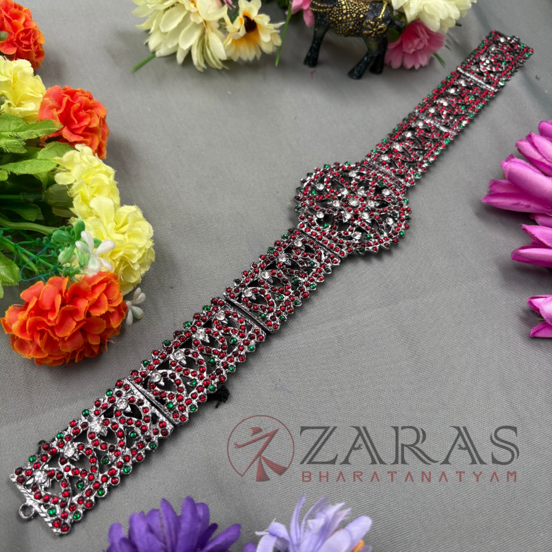 Zaras offers an exclusive collection of Ottiyanams. Kemp Ottiyanams are made with green and maroon kemp stones, white stones and pearl hangings, Ottiyanams are designed with pure white stones as well as coloured stones with intricate designs, Gold plated ottiyanams which are perfect for male dancers and many more unique designs are available. The length is designed accordingly and is suitable for all age groups, also can be adjusted according to the waist size.