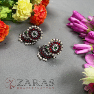 Other than for performances, Jhumkas are an essential ornament in the lives of dancers for their daily use. While kemp jhumkas with traditional and intricate designs add an explicit look, gold-plated jhumkas are a perfect choice for Mohiniyattam, coloured and white stoned jhumkas upgrade the look with a contemporary touch. Enhance your Aharya Abhinayam and Nritta through these unique pieces.