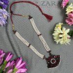 Zaras has a wide range of Haram collections starting from pearls to coloured stones, white stones and gold-plated harams. The pearl harams mostly come with a combination of white pearls, and maroon and green kemp stones. The pendant adorned with pearl hangings and unique designs filled with kemp stones is another rare touch. The harams designed with white and coloured stones, give a more royal look with its intricate designs and can be opted for stage performances while the popular pearl harams are a perfect choice for all kinds of stage performances as well as rehearsals, which allows dancers to dance with more confidence. The gold-plated harams are a perfect choice for Mohiniyattam. The length can be adjusted with the help of attached extension threads.