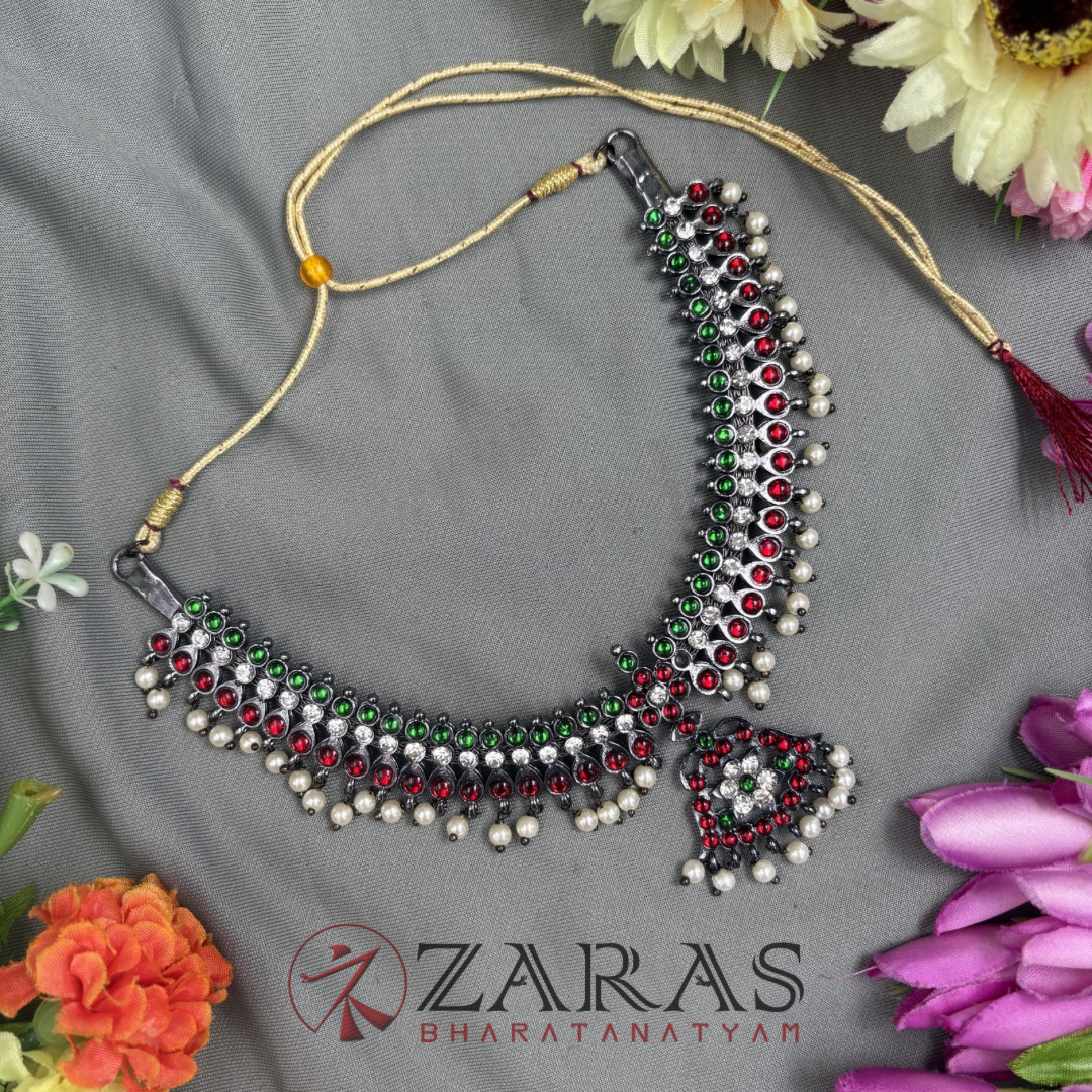 Bharatanatyam Dance Jewellery Black Necklace – Flower RG Kemp Beads