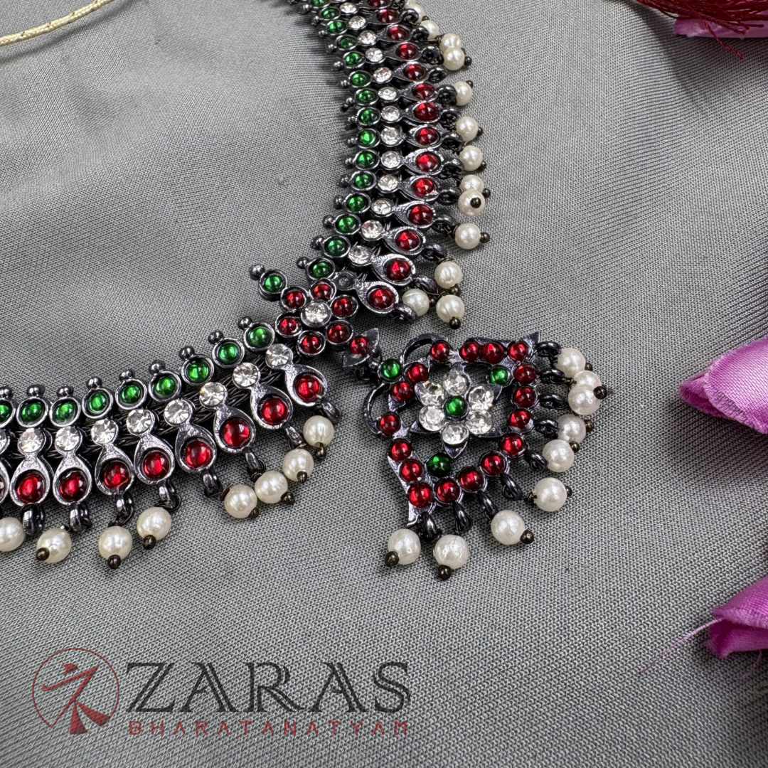Bharatanatyam Dance Jewellery Black –  Flower RG Kemp Beads