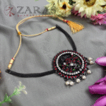 Zaras showcases an exclusive collection of attigais. Starting from Pearl attigais made with white pearls, green and maroon kemp stones and pendants of various shapes, to golden beaded attiagais which stand out from other collections and white and coloured stoned attiagi that shine out for heavy and intricate designs. The choker used for Mohiniyattam and Kuchipudi performances Alukkuthalis, is also available in various designs. The length can be adjusted with the help of attached extension threads.
