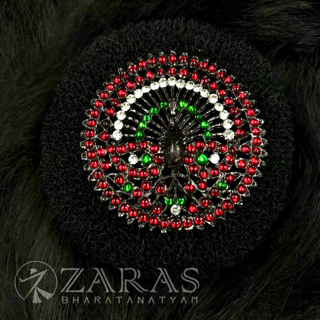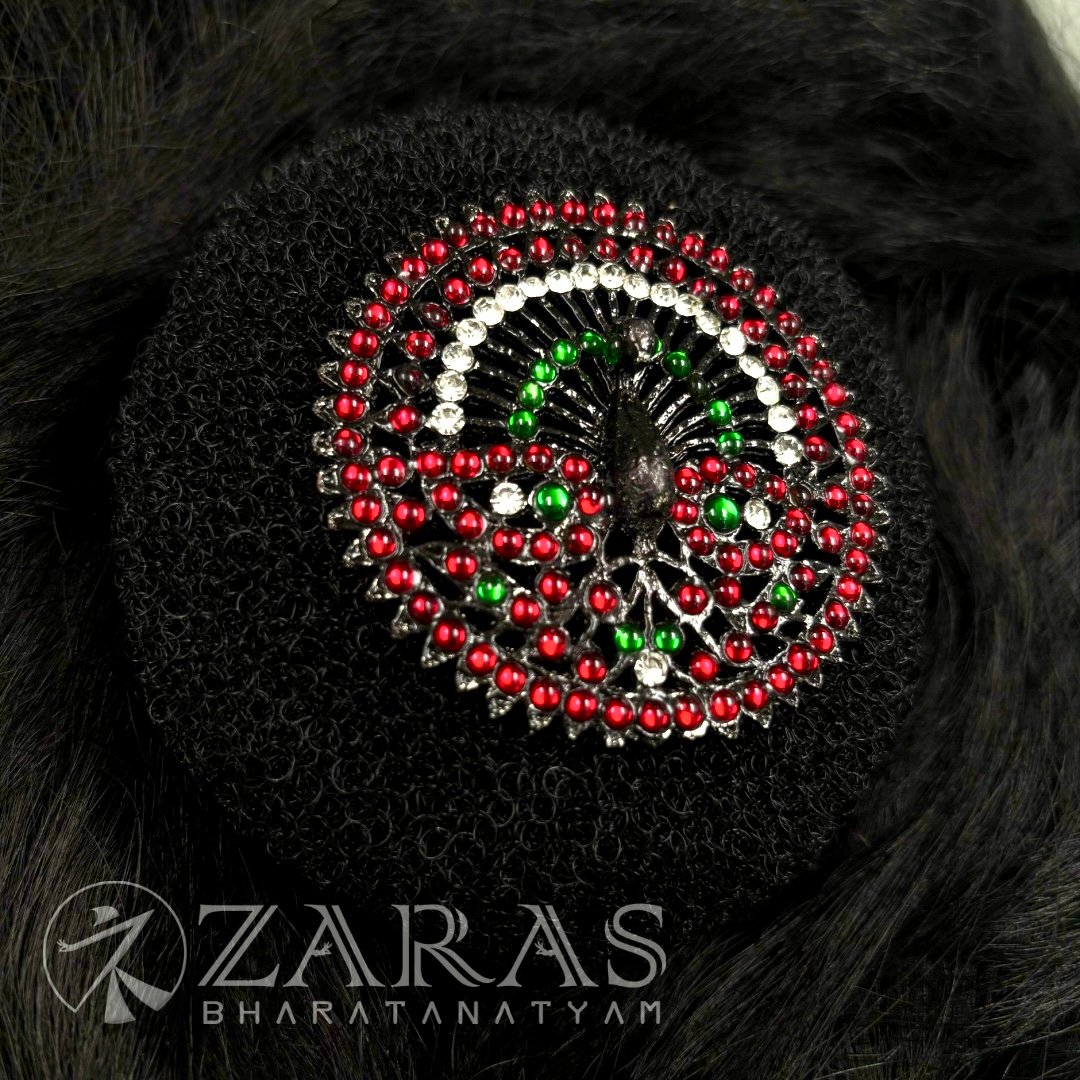 A rakodi is a hair ornament worn by female Bharatanatyam dancers. The rakodi is positioned above a hair ring that is used to secure all of the hair at the top. Despite being a tiny, one-piece ornament, it is just as essential as the others. Flowers are tied around the hair ring and the rakodi is placed above it, resulting in total beauty.