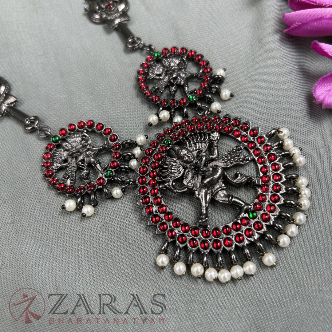 Neckpieces are the primary attraction in Bharatanatyam jewellery. The long malai, known as Haram, is an inevitable piece of adornment during performances. This is said to help dancers maintain their breathing during the performance.