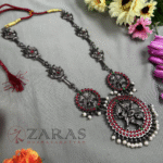 Zaras has a wide range of Haram collections starting from pearls to coloured stones, white stones and gold-plated harams. The pearl harams mostly come with a combination of white pearls, and maroon and green kemp stones. The pendant adorned with pearl hangings and unique designs filled with kemp stones is another rare touch. The harams designed with white and coloured stones, give a more royal look with its intricate designs and can be opted for stage performances while the popular pearl harams are a perfect choice for all kinds of stage performances as well as rehearsals, which allows dancers to dance with more confidence. The gold-plated harams are a perfect choice for Mohiniyattam. The length can be adjusted with the help of attached extension threads.