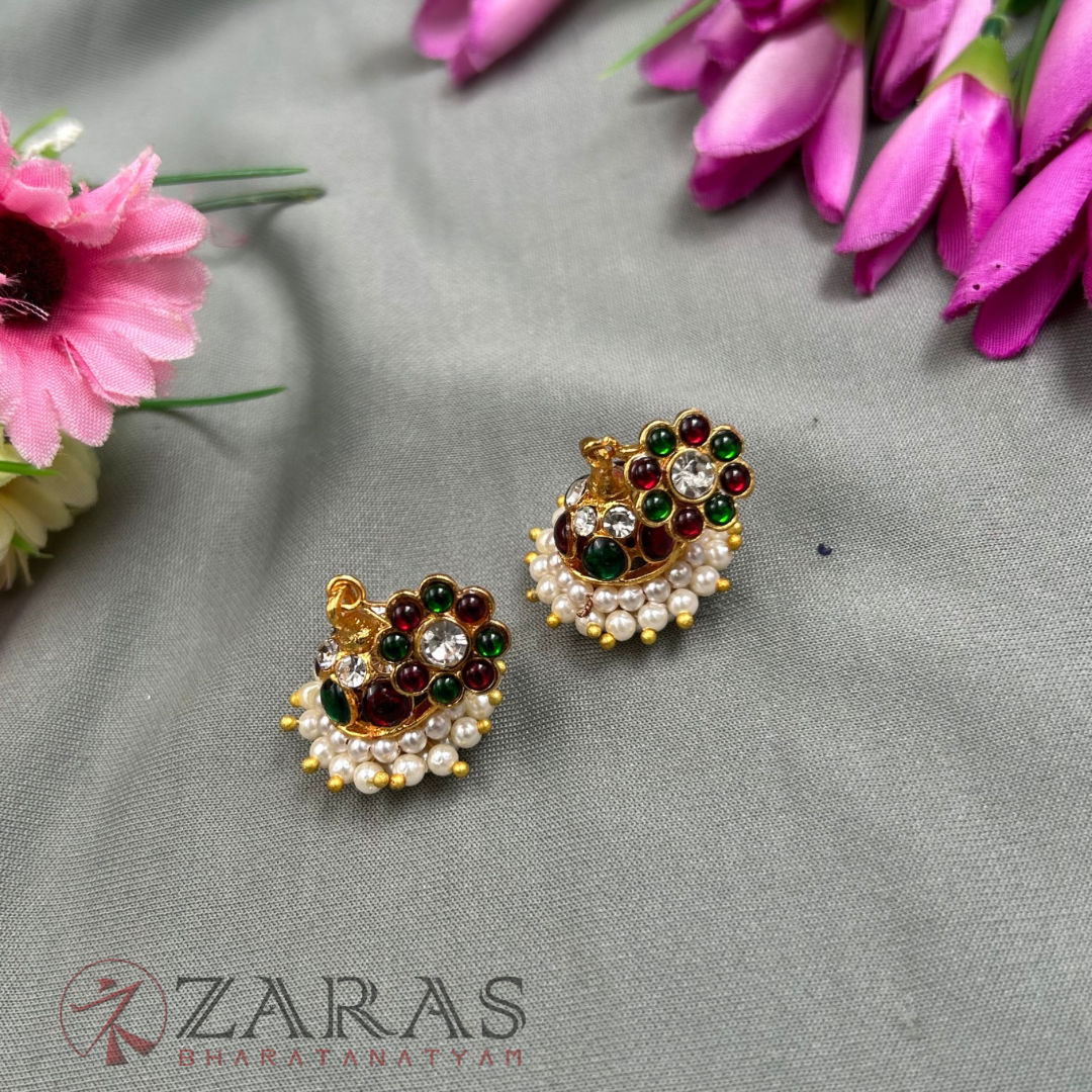 Other than for performances, Jhumkas are an essential ornament in the lives of dancers for their daily use. While kemp jhumkas with traditional and intricate designs add an explicit look, gold-plated jhumkas are a perfect choice for Mohiniyattam, coloured and white stoned jhumkas upgrade the look with a contemporary touch. Enhance your Aharya Abhinayam and Nritta through these unique pieces.