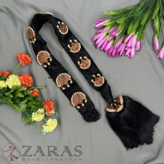 It may be of single pieces consisting of nearly seven pieces kept leaving a gap in between the false braided hair or connected ones which seems lengthy. For some dances, the dancers use to place this decorated braided hair in the front so that it is more visible to the audience and also gives a special charm to the dancer.