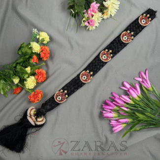 The jadai set not only enhances the visual appeal but also complements the overall presentation by accentuating the dancer’s grace and posture. The ornamentation is designed to secure the dancer’s hair in place while showcasing the elegance and discipline of Bharatanatyam.Explore Zara’s 50-plus varieties of Jadai sets and choose the one that suits your style andelegance.