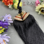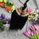 In Bharatanatyam, the Kunjalam is a traditional hair accessory that plays a significant role in enhancing the dancer’s aesthetic appeal, cultural expression, and overall grace. Adorned with pearls, stones, and intricate designs, the Kunjalam adds an elegant touch to the dancer’s hairstyle, completing the visual presentation. It holds cultural importance, symbolizing femininity, grace, and prosperity within South Indian tradition.