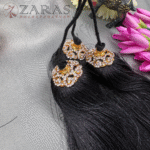 Zaras offers a variety of Kunjalams, including Ball Kunjalams adorned with Golden or Kemp jhumkas on top, as well as Kunjalams featuring black thread hangings. Some designs aredecorated with pearls, while others feature jhumkas embellished with white and coloured stones.