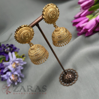 Zaras has an array of Mattal collections. Starting from traditional designs, made with an array of green and maroon kemp stones and pearls, with a golden base, presenting an aesthetic look, mattals with the alignment of white stones in the centre and maroon kemp stones and pearls on either side, small-sized mattals suitable for dancers below the age of 10- 12 and various other collections.