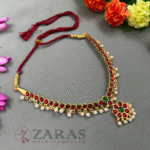 Zaras showcases an exclusive collection of attigais. Starting from Pearl attigais made with white pearls, green and maroon kemp stones and pendants of various shapes, to golden beaded attiagais which stand out from other collections and white and coloured stoned attiagi that shine out for heavy and intricate designs. The choker used for Mohiniyattam and Kuchipudi performances Alukkuthalis, is also available in various designs. The length can be adjusted with the help of attached extension threads.