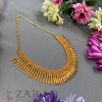 Neckpieces are the primary attraction of Bharatanatyam jewellery. The short necklace known as Attigai is the most stunning component in the entire jewellery set. Dancers develop an identity through attigai, which they employ not only for shows but also for religious or cultural events. Neckpieces are said to assist dancers in keeping their breathing steady during the performance.