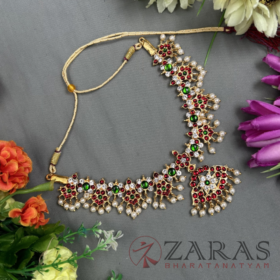 Neckpieces are the primary attraction of Bharatanatyam jewellery. The short necklace known as Attigai is the most stunning component in the entire jewellery set. Dancers develop an identity through attigai, which they employ not only for shows but also for religious or cultural events. Neckpieces are said to assist dancers in keeping their breathing steady during the performance.