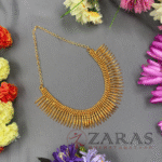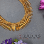 Zaras showcases an exclusive collection of attigais. Starting from Pearl attigais made with white pearls, green and maroon kemp stones and pendants of various shapes, to golden beaded attiagais which stand out from other collections and white and coloured stoned attiagi that shine out for heavy and intricate designs. The choker used for Mohiniyattam and Kuchipudi performances Alukkuthalis, is also available in various designs. The length can be adjusted with the help of attached extension threads.
