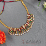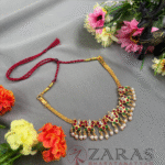 Zaras showcases an exclusive collection of attigais. Starting from Pearl attigais made with white pearls, green and maroon kemp stones and pendants of various shapes, to golden beaded attiagais which stand out from other collections and white and coloured stoned attiagi that shine out for heavy and intricate designs. The choker used for Mohiniyattam and Kuchipudi performances Alukkuthalis, is also available in various designs. The length can be adjusted with the help of attached extension threads.