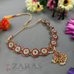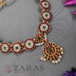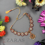Zaras showcases an exclusive collection of attigais. Starting from Pearl attigais made with white pearls, green and maroon kemp stones and pendants of various shapes, to golden beaded attiagais which stand out from other collections and white and coloured stoned attiagi that shine out for heavy and intricate designs. The choker used for Mohiniyattam and Kuchipudi performances Alukkuthalis, is also available in various designs. The length can be adjusted with the help of attached extension threads.