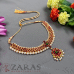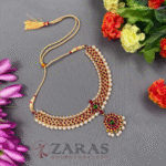 Zaras showcases an exclusive collection of attigais. Starting from Pearl attigais made with white pearls, green and maroon kemp stones and pendants of various shapes, to golden beaded attiagais which stand out from other collections and white and coloured stoned attiagi that shine out for heavy and intricate designs. The choker used for Mohiniyattam and Kuchipudi performances Alukkuthalis, is also available in various designs. The length can be adjusted with the help of attached extension threads.