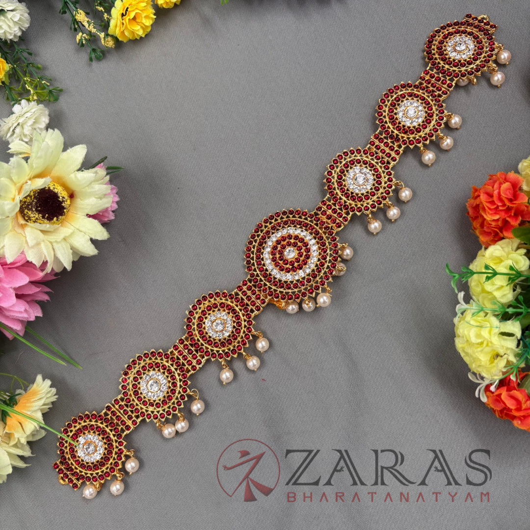 Zaras offers an exclusive collection of Ottiyanams. Kemp Ottiyanams are made with green and maroon kemp stones, white stones and pearl hangings, Ottiyanams are designed with pure white stones as well as coloured stones with intricate designs, Gold plated ottiyanams which are perfect for male dancers and many more unique designs are available. The length is designed accordingly and is suitable for all age groups, also can be adjusted according to the waist size.
