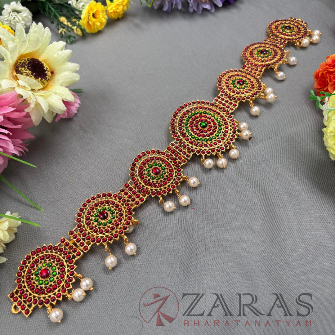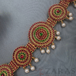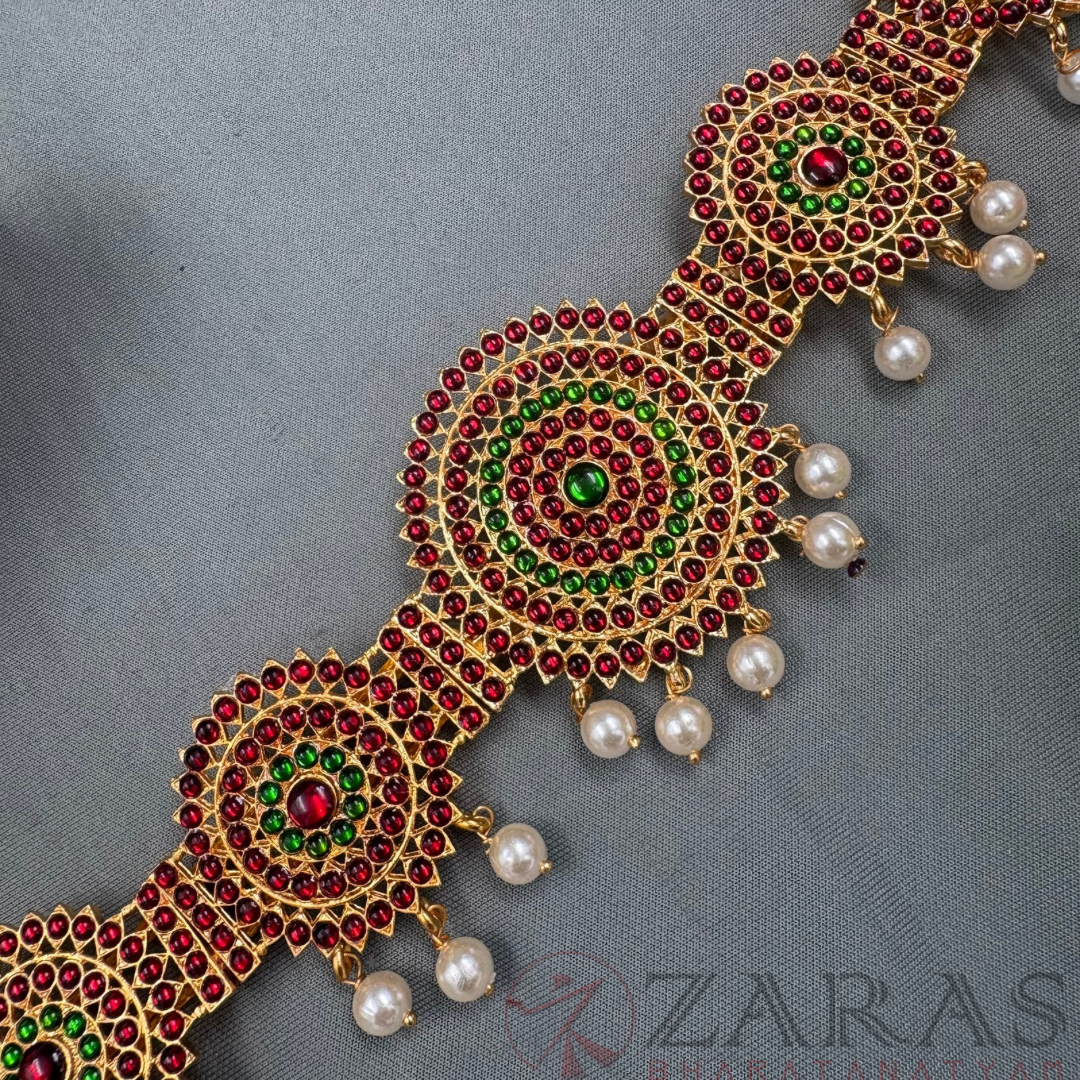 Zaras offers an exclusive collection of Ottiyanams. Kemp Ottiyanams are made with green and maroon kemp stones, white stones and pearl hangings, Ottiyanams are designed with pure white stones as well as coloured stones with intricate designs, Gold plated ottiyanams which are perfect for male dancers and many more unique designs are available. The length is designed accordingly and is suitable for all age groups, also can be adjusted according to the waist size.