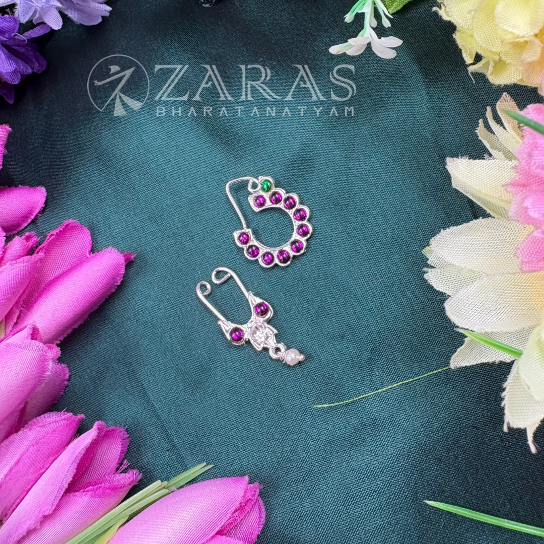 BlaIn Bharatanatyam, nose adornments, such as nose rings serve both aesthetic and cultural purposes, enhancing the dancer’s appearance and complementing their performance. These ornaments are deeply rooted in Indian tradition, symbolizing beauty, identity, and cultural heritage, with nose piercings sometimes signifying marital status.