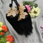 Zaras offers a variety of Kunjalams, including Ball Kunjalams adorned with Golden or Kemp jhumkas on top, as well as Kunjalams featuring black thread hangings. Some designs aredecorated with pearls, while others feature jhumkas embellished with white and coloured stones.