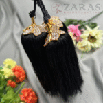 In Bharatanatyam, the Kunjalam is a traditional hair accessory that plays a significant role in enhancing the dancer’s aesthetic appeal, cultural expression, and overall grace. Adorned with pearls, stones, and intricate designs, the Kunjalam adds an elegant touch to the dancer’s hairstyle, completing the visual presentation. It holds cultural importance, symbolizing femininity, grace, and prosperity within South Indian tradition.