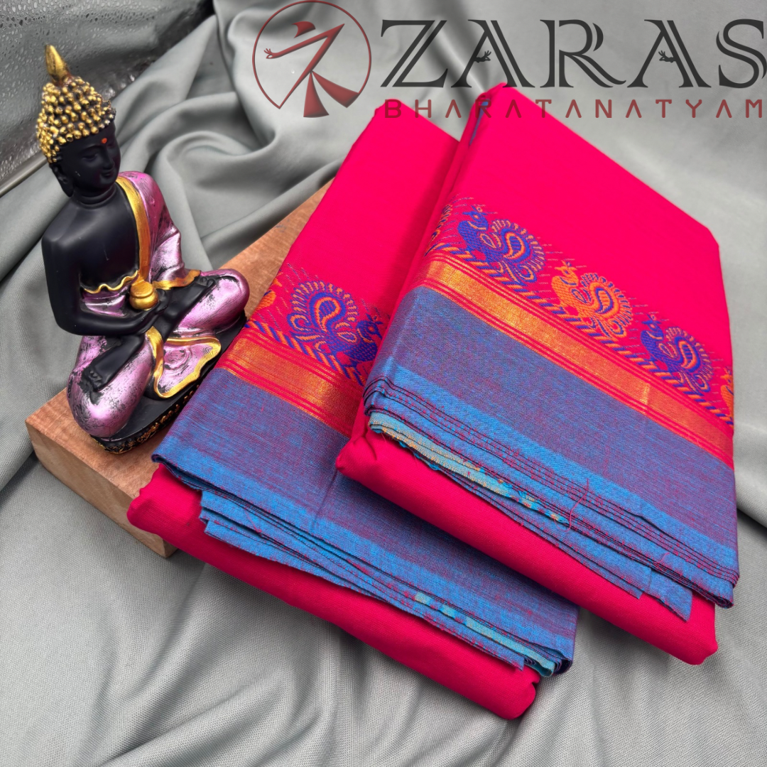 Explore Zara’s online collection, featuring an array of custom and ready-made Bharatanatyam cotton dance practice sarees.