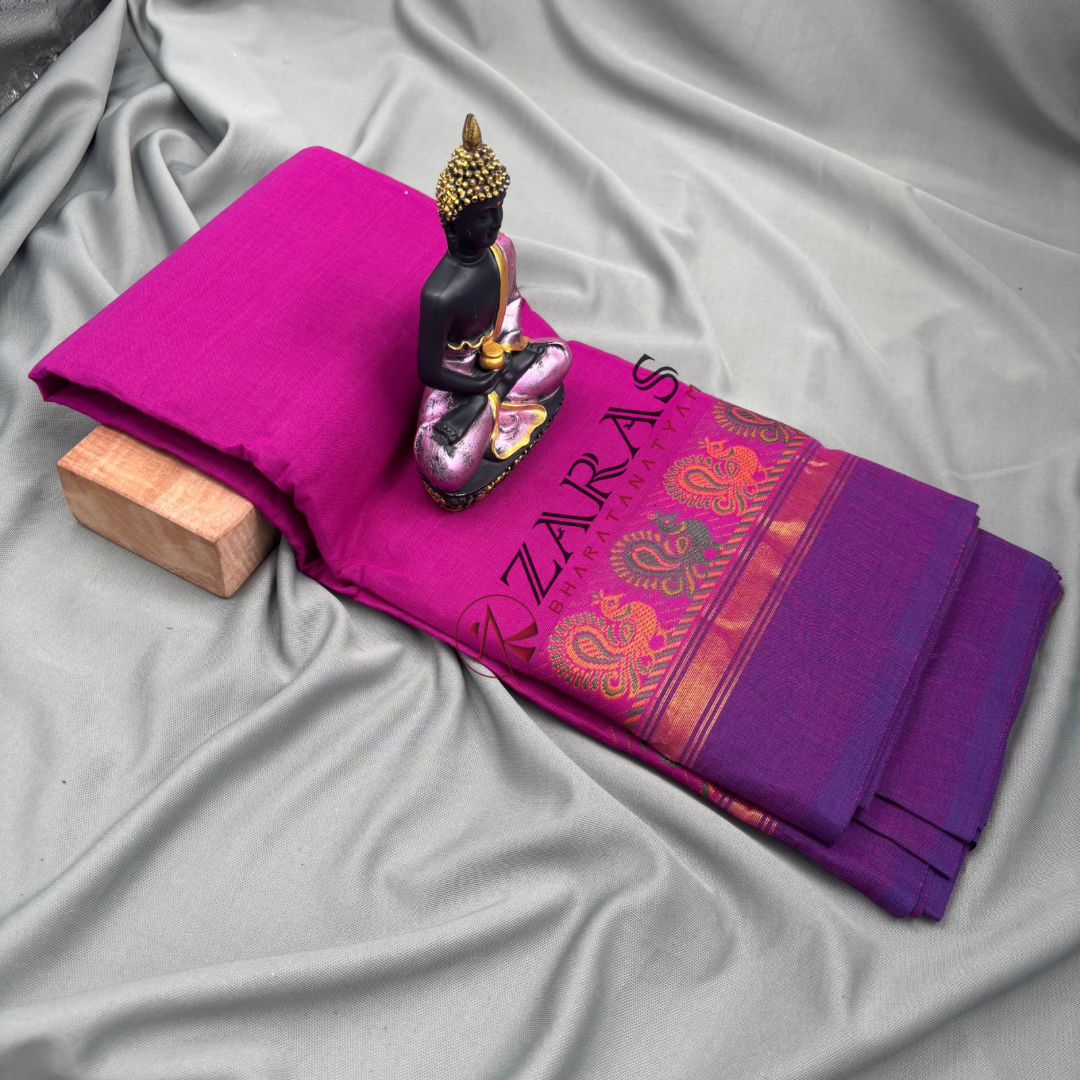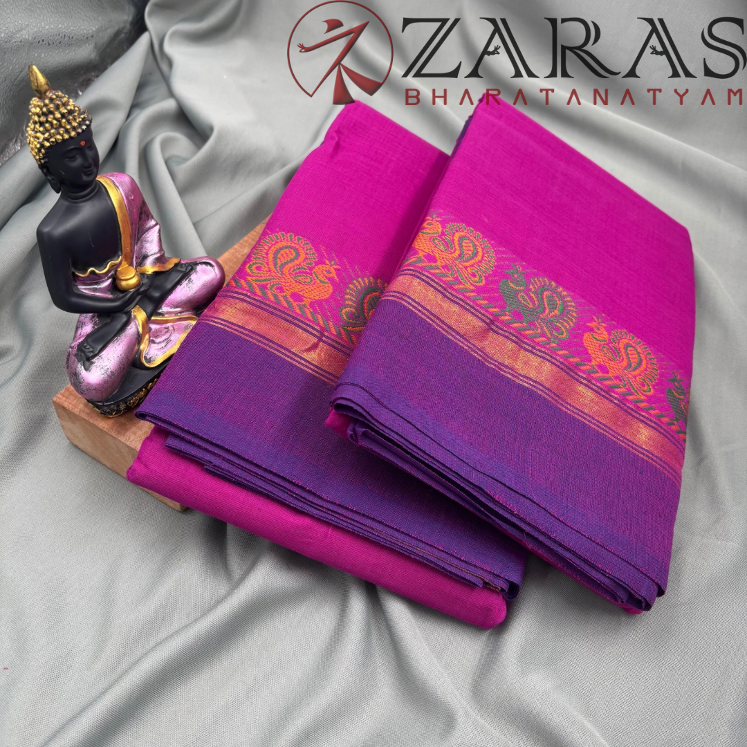 Explore Zara’s online collection, featuring an array of custom and ready-made Bharatanatyam cotton dance practice sarees.