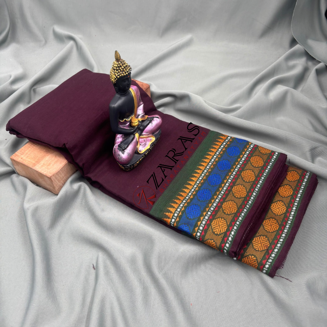 It comes in a variety of traditional colour combinations, like maroon, green, violet, orange, white with red, orange with blue, pink with green, yellow with red, blue, green border etc.