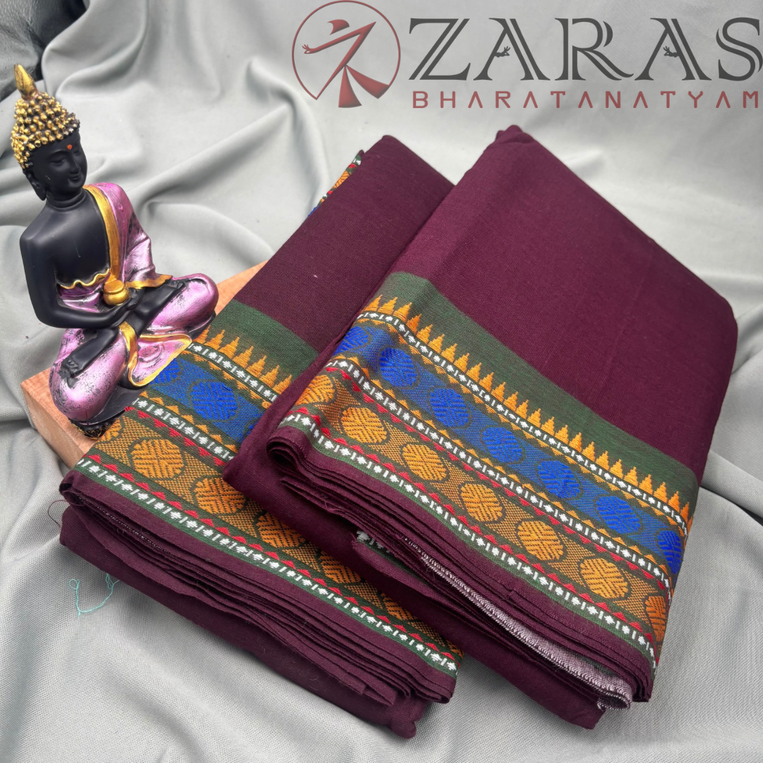 Explore Zara’s online collection, featuring an array of custom and ready-made Bharatanatyam cotton dance practice sarees.