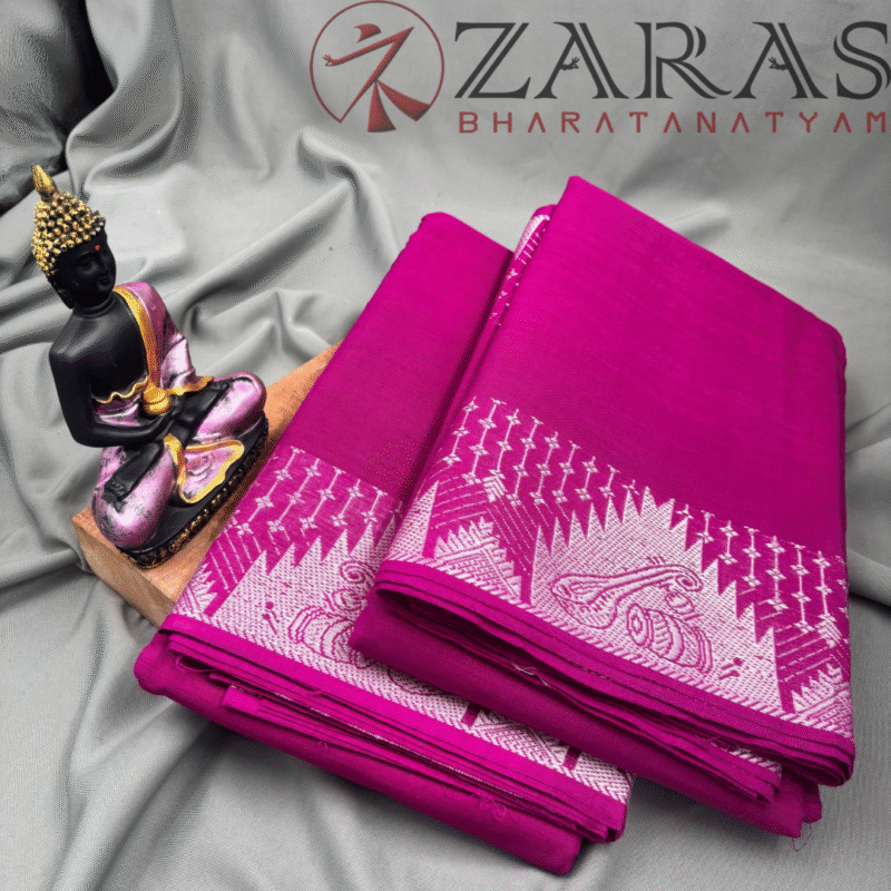 Dance practice sarees are an essential part of a dancer’s life, independent of the dance form, particularly Bharatanatyam, Kuchipudi, Mohiniyattam, and others. From practice space to final rehearsals, a dance saree travels along with a female dancer. The artist’s comfort from the breathable, sweat-absorbing cotton fabric allows the dancer to move with flexibility while also being the greatest partner for long hours of sweating and practice.