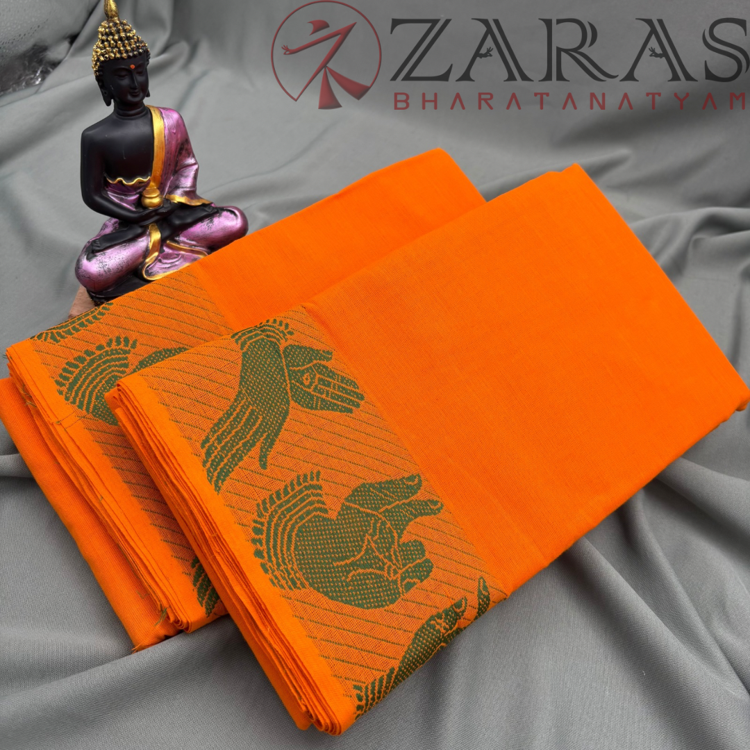 Explore Zara’s online collection, featuring an array of custom and ready-made Bharatanatyam cotton dance practice sarees.
