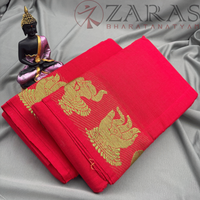 Explore Zara’s online collection, featuring an array of custom and ready-made Bharatanatyam cotton dance practice sarees.