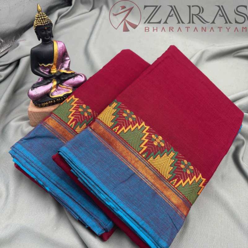 Bharatanatyam Dance Practice Saree – Maroon Blue Gopuram Border