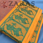 The exquisite design of dancing doll sarees embodies the beauty of traditional dance. The border’s elaborate patterns of pillars and a dancing girl enhance the dance’s beauty and the dancer’s elegance. This is recommended for both practice sessions and final-stage rehearsals.