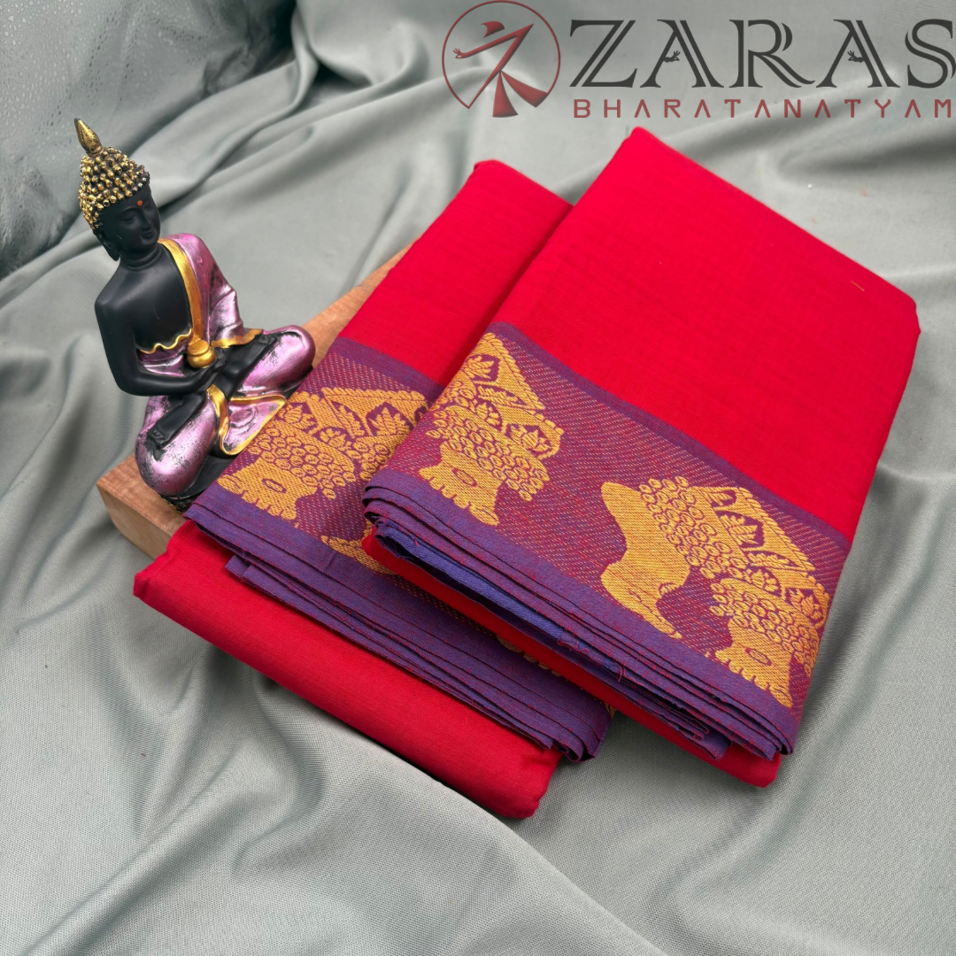 Explore Zara’s online collection, featuring an array of custom and ready-made Bharatanatyam cotton dance practice sarees.