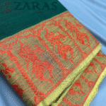 The exquisite design of dancing doll sarees embodies the beauty of traditional dance. The border’s elaborate patterns of pillars and a dancing girl enhance the dance’s beauty and the dancer’s elegance. This is recommended for both practice sessions and final-stage rehearsals.