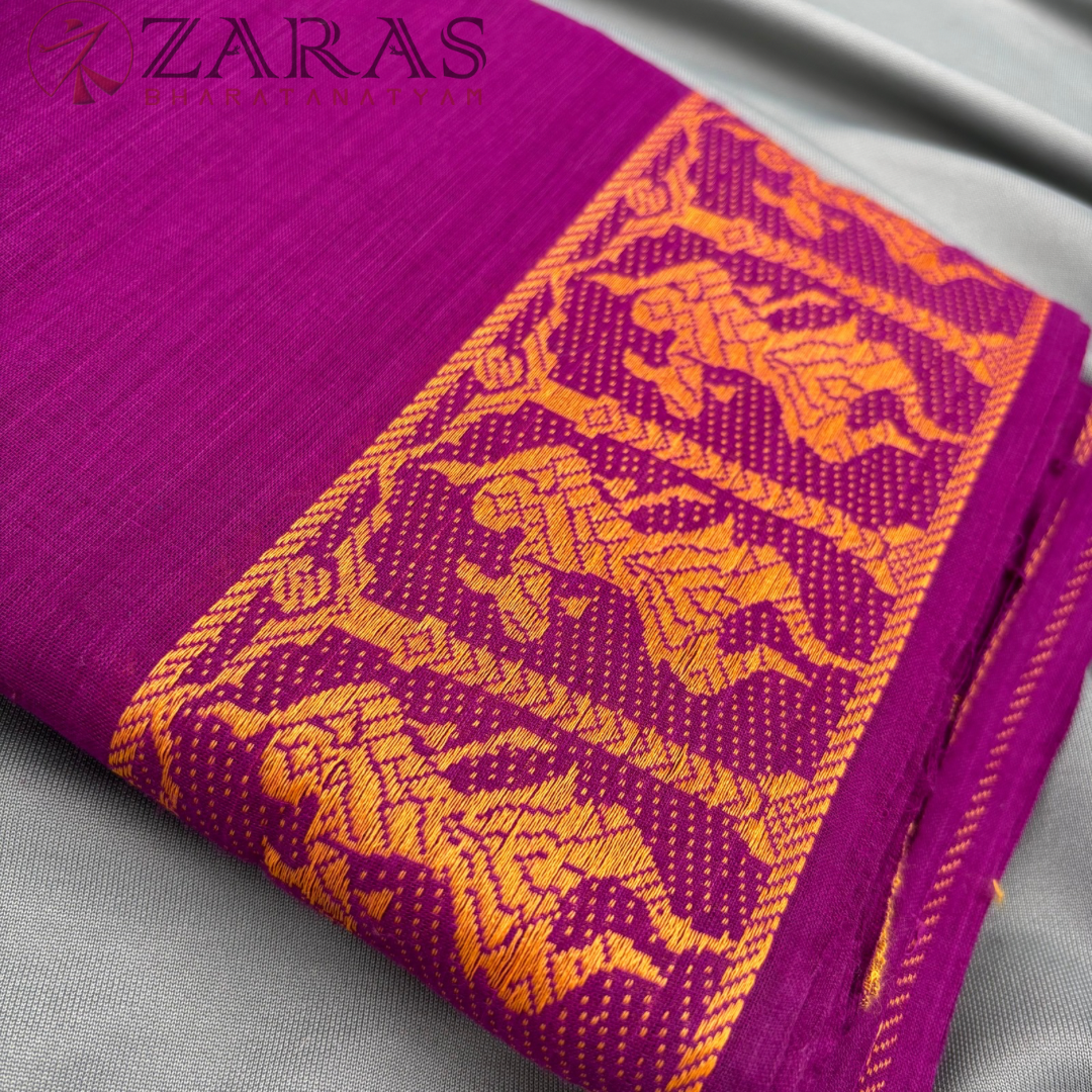 Explore Zara’s online collection, featuring an array of custom and ready-made Bharatanatyam cotton dance practice sarees.
