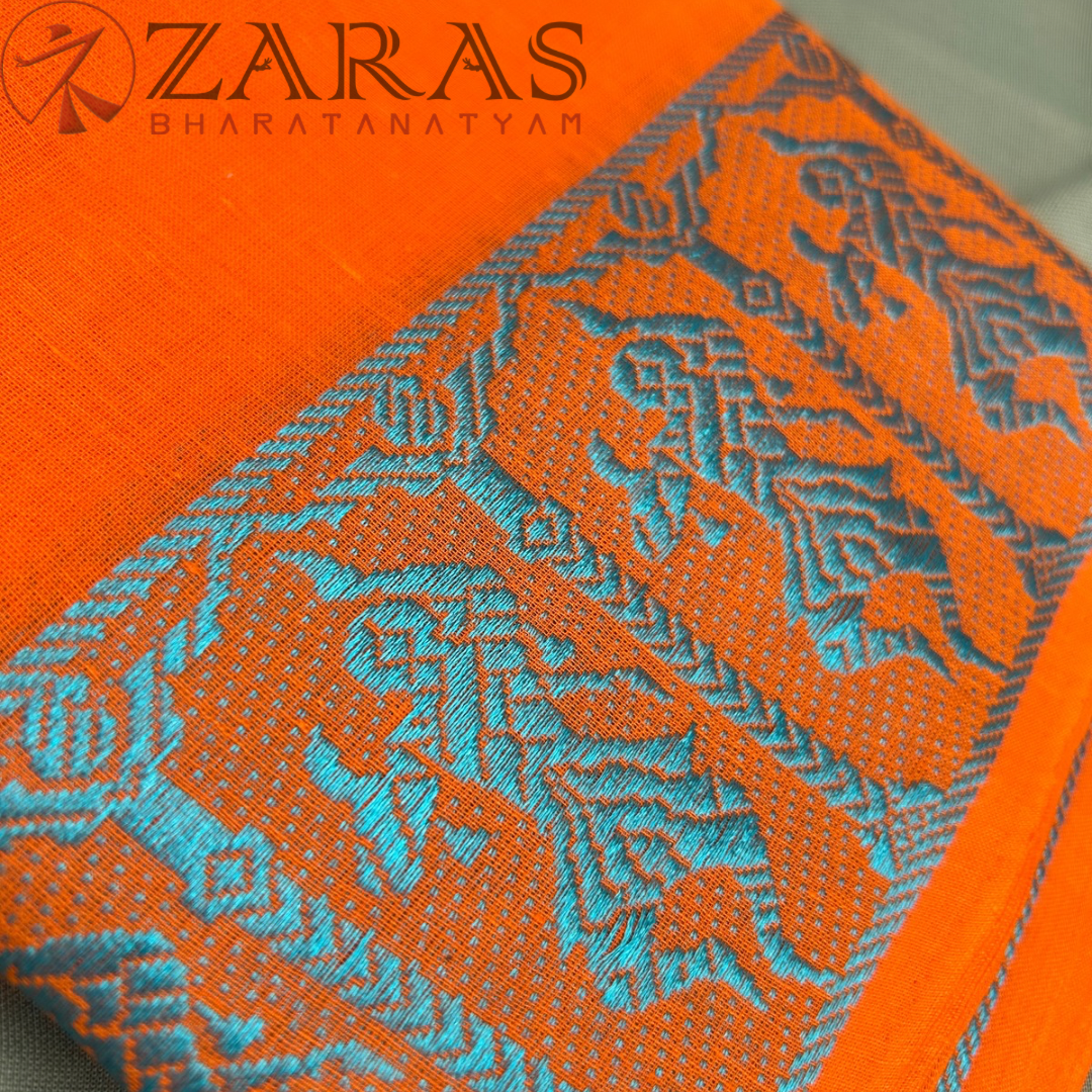 Bharatanatyam Dance Practice Saree – L Orange Blue Doll Border