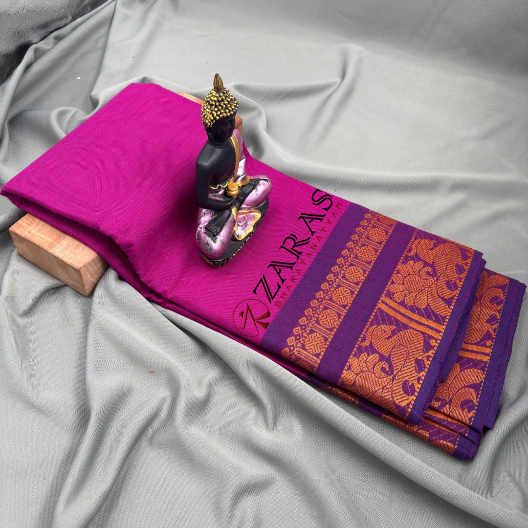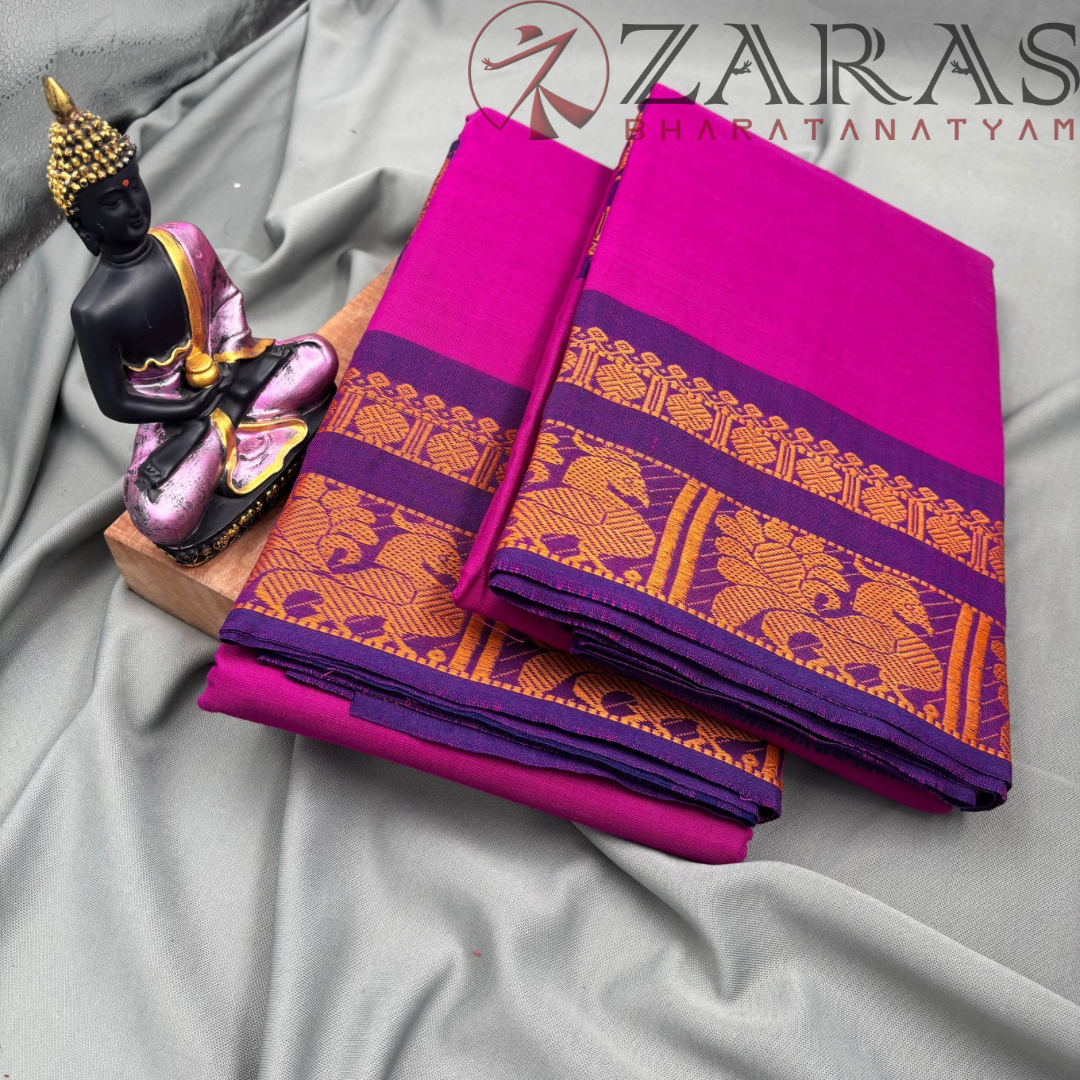 Explore Zara’s online collection, featuring an array of custom and ready-made Bharatanatyam cotton dance practice sarees.