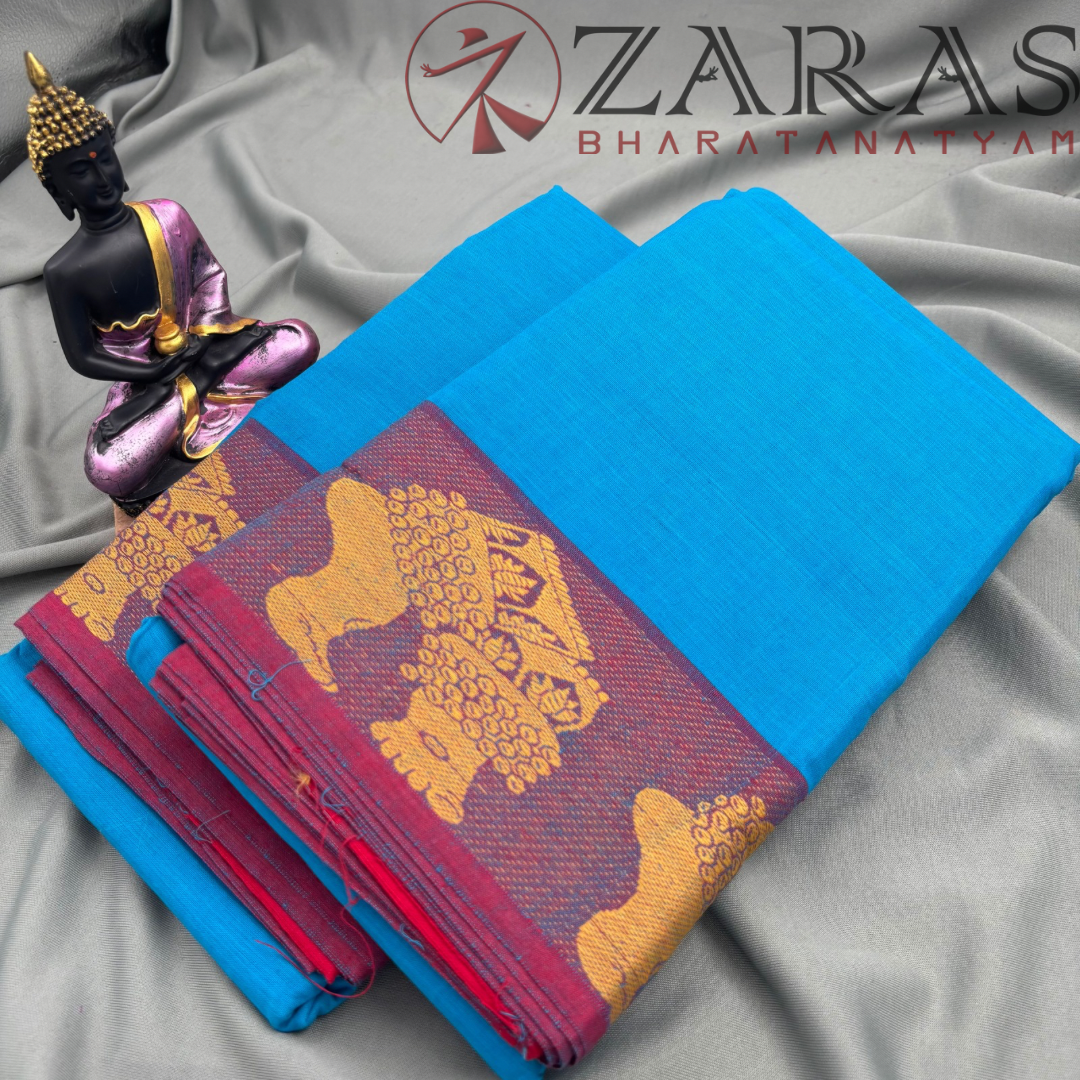 Explore Zara’s online collection, featuring an array of custom and ready-made Bharatanatyam cotton dance practice sarees.