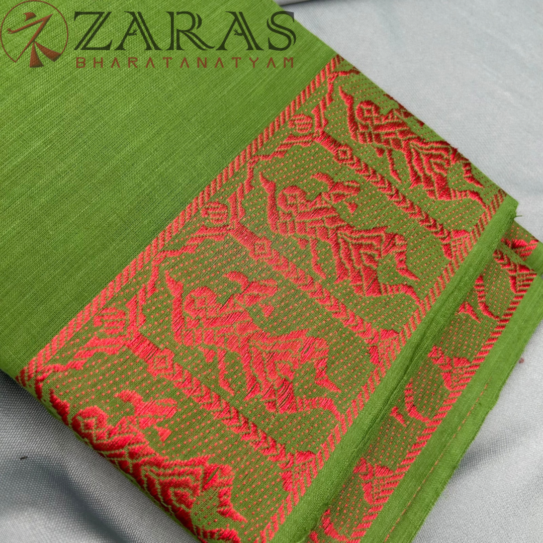 Bharatanatyam Dance Practice Saree – Olive Green Doll Border