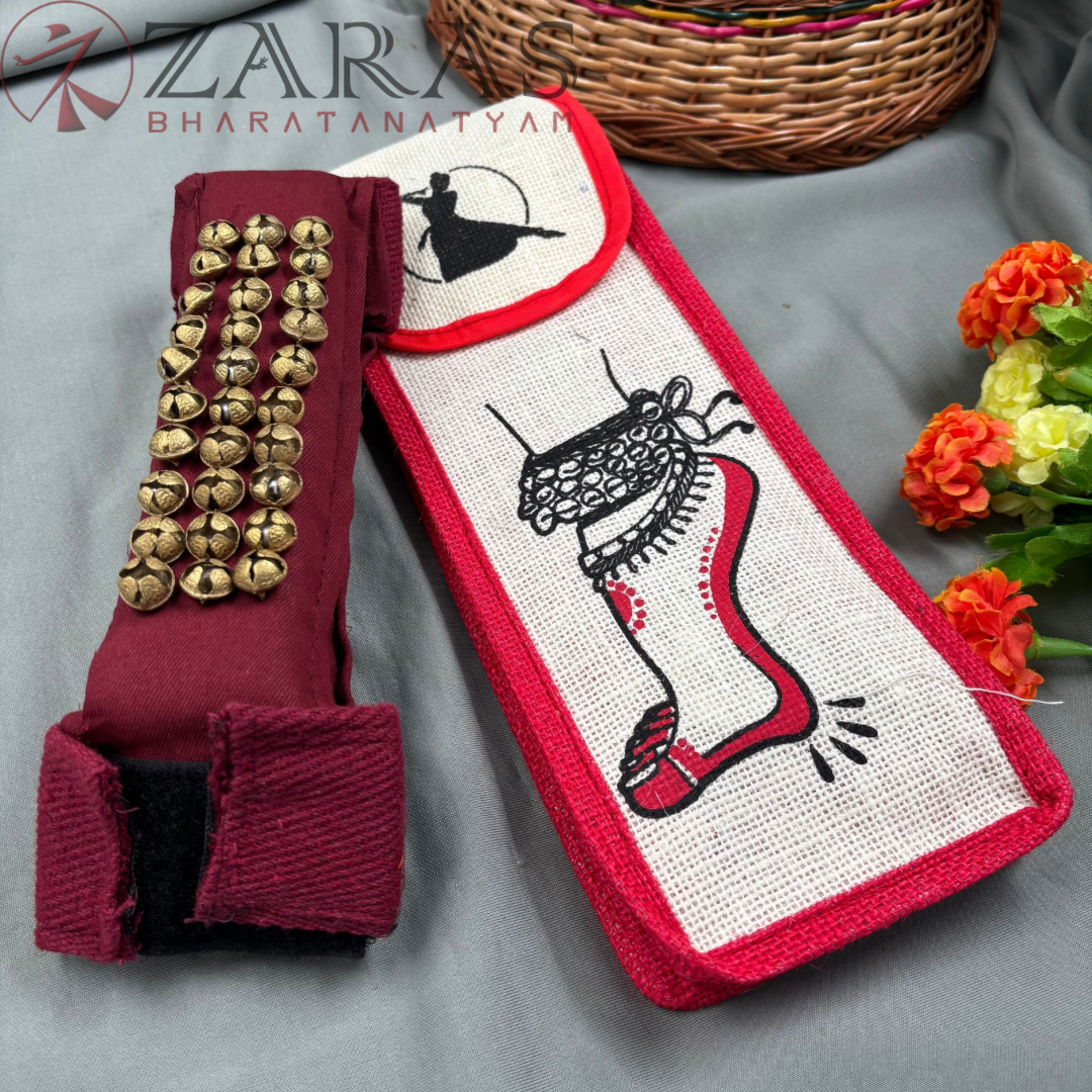 This pair of 3 line (Maroon) ankle bells are made up of cloth with well krow.